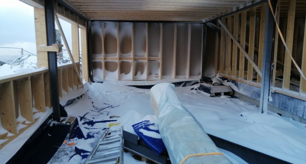Utfordrende på mange måter både logistikk og utførelse. Ekstreme værforhold bygget blir utsatt for. Dette ble et fantastisk bygg! Anbefaler turen og ikke minst maten!